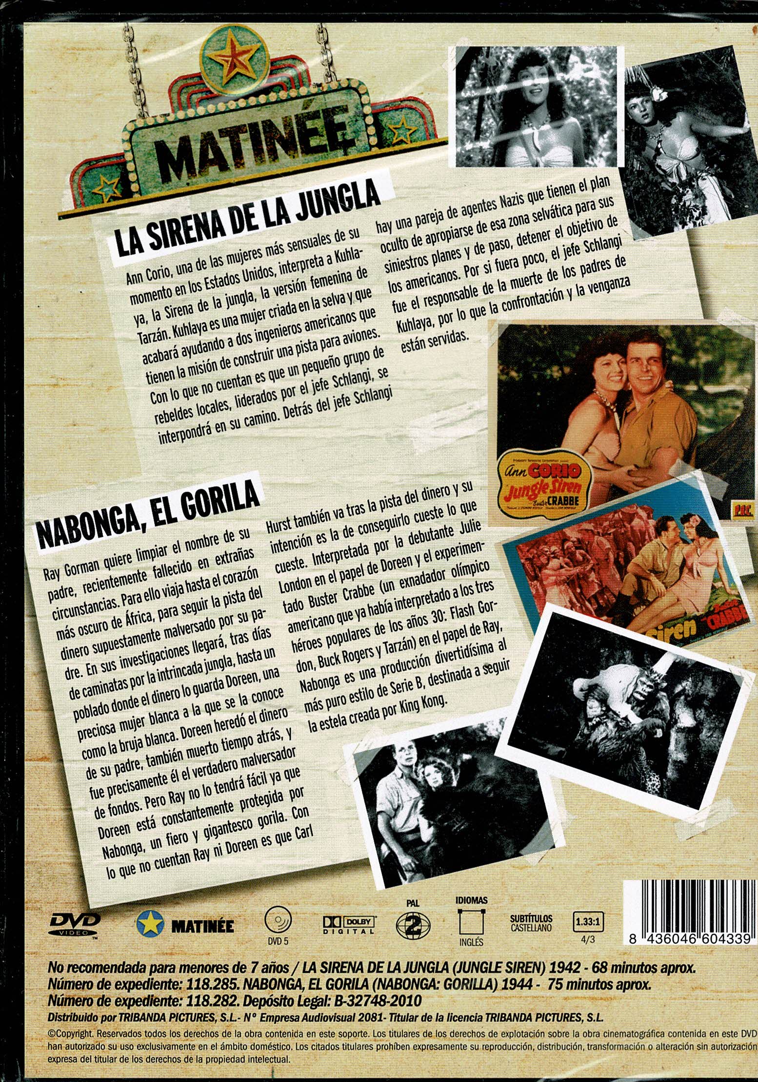 Matinée : 2 Peliculas La Sirena de la Jungla -Nabonga el Gorila .