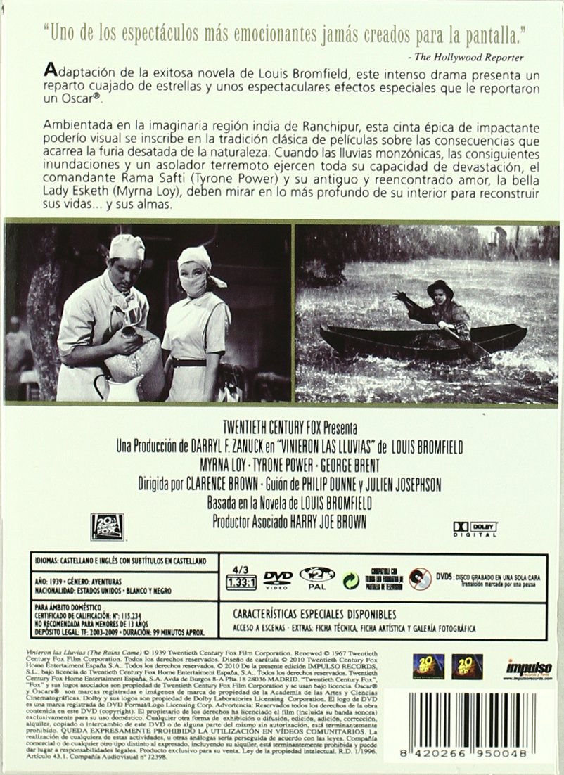 Título original The Rains Came Año 1939 Duración 103 min.País Estados Unidos